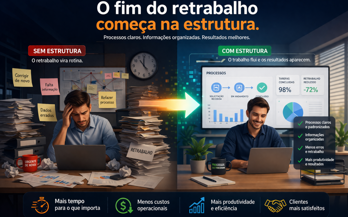O retrabalho geralmente não acontece por falta de dedicação, mas por ausência de estrutura adequada.